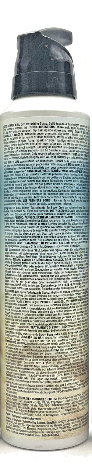 Create effortless, beachy texture with Sexy Hair Texture Surfer Girl Dry Texturizing Spray. This lightweight, dry spray instantly adds volume, definition, and soft, flexible hold without weighing hair down or leaving a sticky residue. Perfect for building tousled waves, enhancing layers, and refreshing styles between washes.