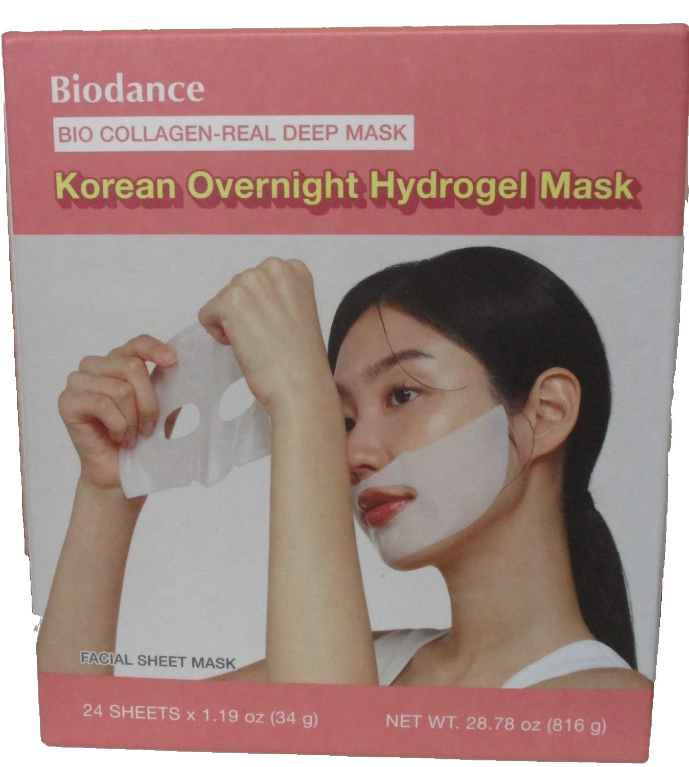 Biodance Korean Overnight Hydrogel Face Mask a deeply hydrating, anti-aging treatment designed to be worn overnight or for several hours during the day. This set includes 24 individually sealed hydrogel sheets infused with bio-collagen, oligo-hyaluronic acid, niacinamide, and probiotic extracts that penetrate deep into the skin for intense moisture, improved elasticity, and a radiant, plump complexion.