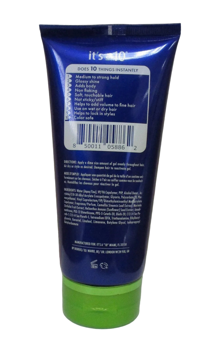 It’s A 10 Miracle Firm Hold Gel. This professional-grade styling gel delivers strong, reliable hold while keeping hair touchable, shiny, and flake-free. Ideal for sculpting, defining, and locking in styles, it provides humidity resistance and all-day control without drying out hair.