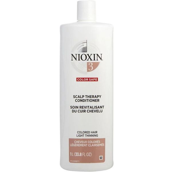 Nioxin System # 3 Scalp Therapy Conditioner for Chemically Treated Hair Normal to Thin Looking Hair adds thickness from inside the cuticle to strengthen the hair shaft. provides Clinically Proven color protection for hair and helps safeguard the scalp from the drying effects of chemical services. Transactive Delivery System™ is a time released delivery system formulated with vitamins that provides moisturizing nourishment for the scalp and hair.
