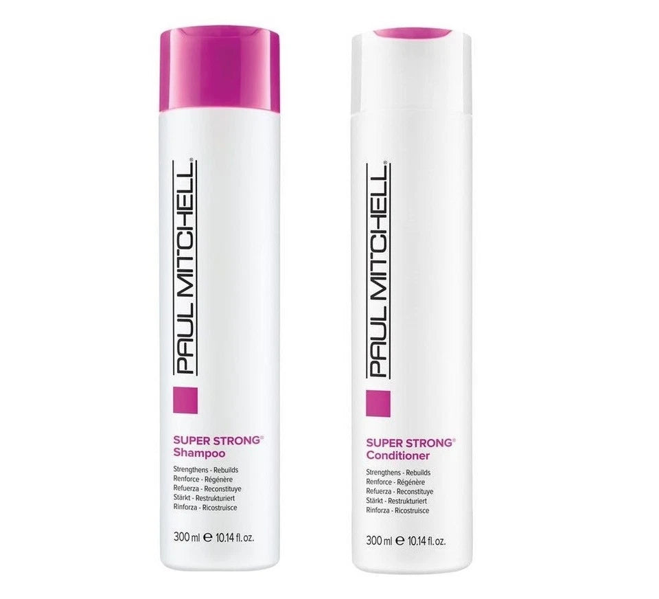 aul Mitchell Super Strong Shampoo and Conditioner Duo, 10.14 oz each. This powerful repairing set uses the exclusive Super Strong® Complex to rebuild hair from within, helping restore elasticity, prevent breakage, and improve overall resilience.